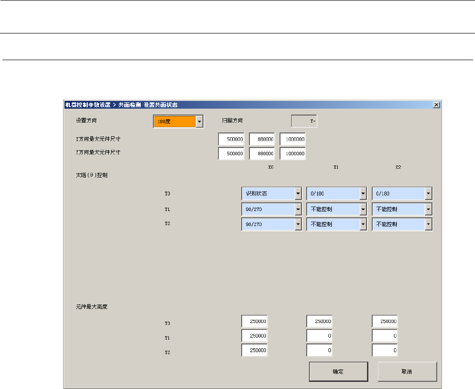 机器控制参数 2- 62 2-4-7-1 设定项目 No. 项目 输入范围 单位 备考 最小值 最大值 1 设置方向 0 270 ° 初始值: 180 ° 0 ° , 90 ° , 180 ° , 270 ° 2 扫描方向 初始值: Y- 3 各 X 分割数的最大元件外形尺寸 4 各 Y 分割数的最大元件外形尺寸 5 θ 控制 0 :识别状态 1 : 0/180 ° 2 : 9 0/270 ° 3 :不能控制 6 元件最大高度 2-4-…