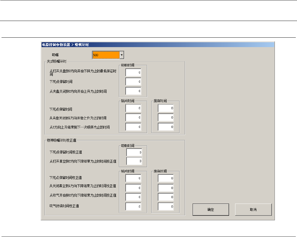 机器控制参数 2- 82 2-5-5 特殊吸嘴计时校正值 2-5-5-1 设定项目 与 “2-5-1-1 吸 嘴信息 - 吸嘴计时 ” 的设置 同义。