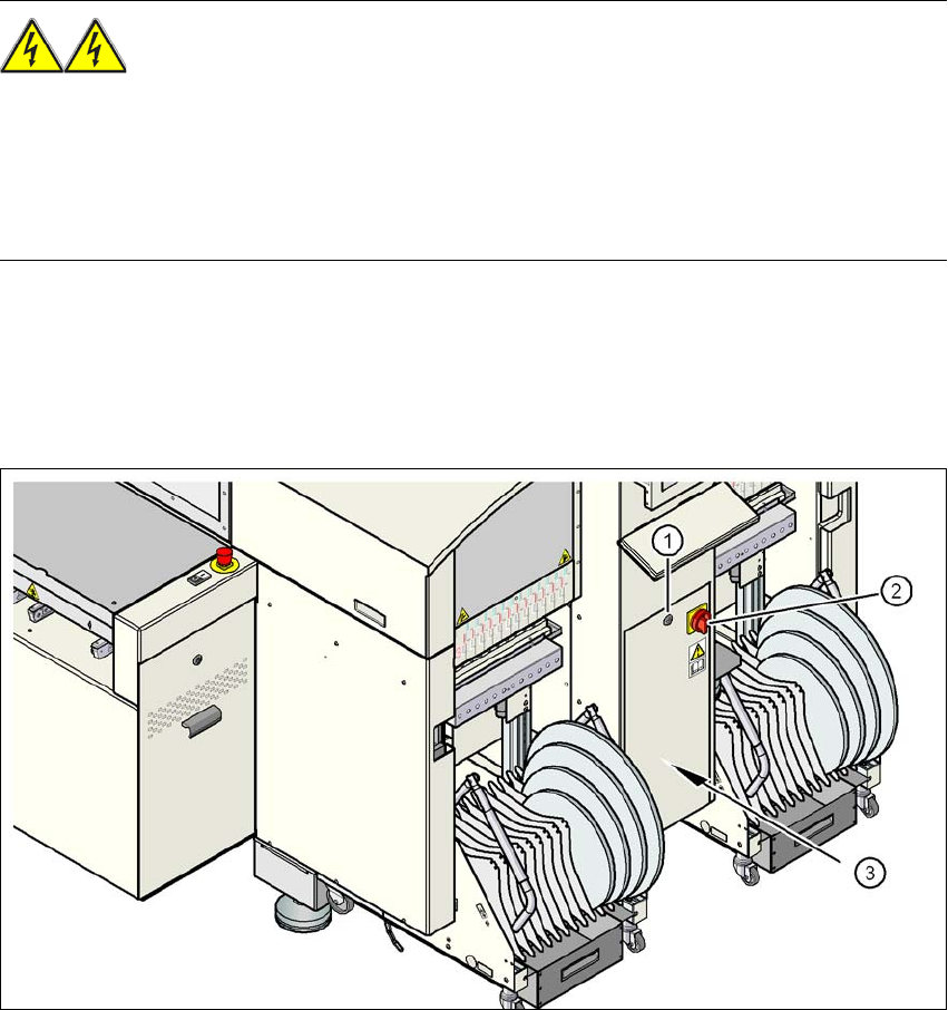 2 Operational safety User manual SIPLACE D4 2.6 Safety equipment From software version SR.605.xx 07/2008 EN Edition 72 2.6.5 Guard on the com ponent trolley locations WA R N I N G 2 All locations must be equipped with fe…