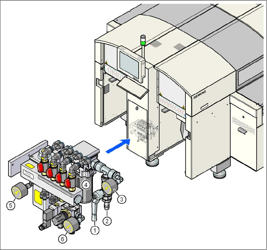 (6) Manometer for the bulk case feeder modules supply pressure