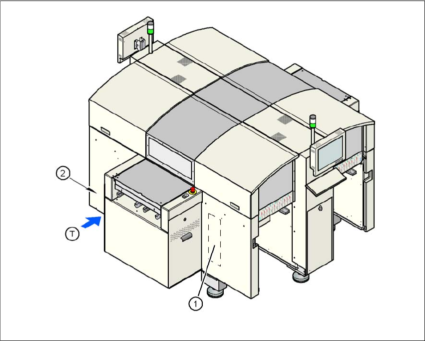 → Make sure that the gantries are positioned over the PCB conveyor area so that you do not
