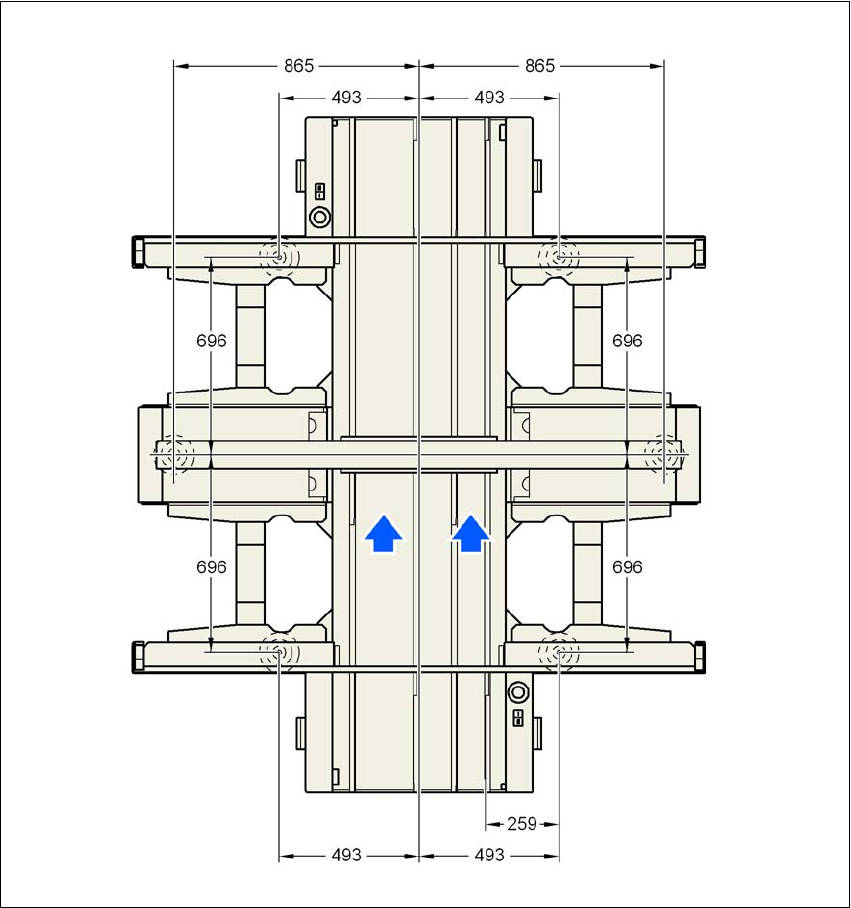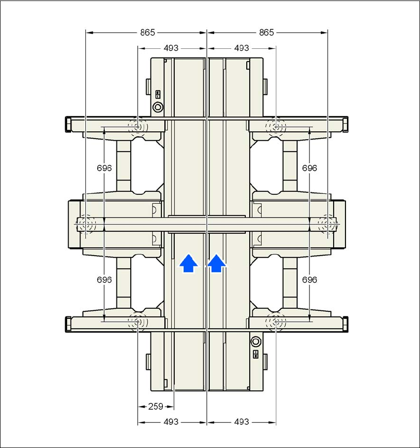 Fig. 4.3 - 5 Machine foot clearances and the stationary right conveyor edge for the PCB dual conveyor