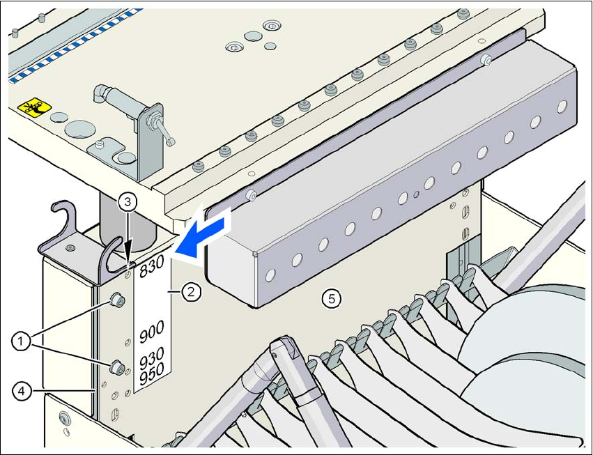 Fig. 4.4 - 2 Component trolley: PCB conveyor height 830 mm - back view, position of the hexagon socket head