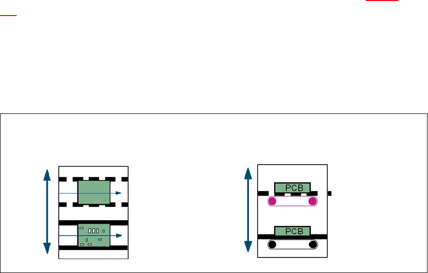 Two conveyor belts carry empty or placed PCBs underneath the machines (see Fig. 6.13 - 1, page