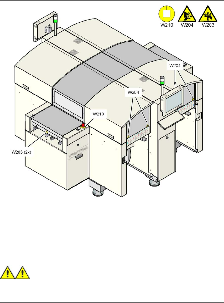 User manual SIPLACE D4 2 Operational safety From software version SR.605.xx 07/2008 EN Edition 2.2 Warning labels 37 2.2.1.1 W arning label W201 2 Pos. W201 in Fig. 2.2 - 1 (number per mach ine : 1) 2.2.1.2 W arning labe…