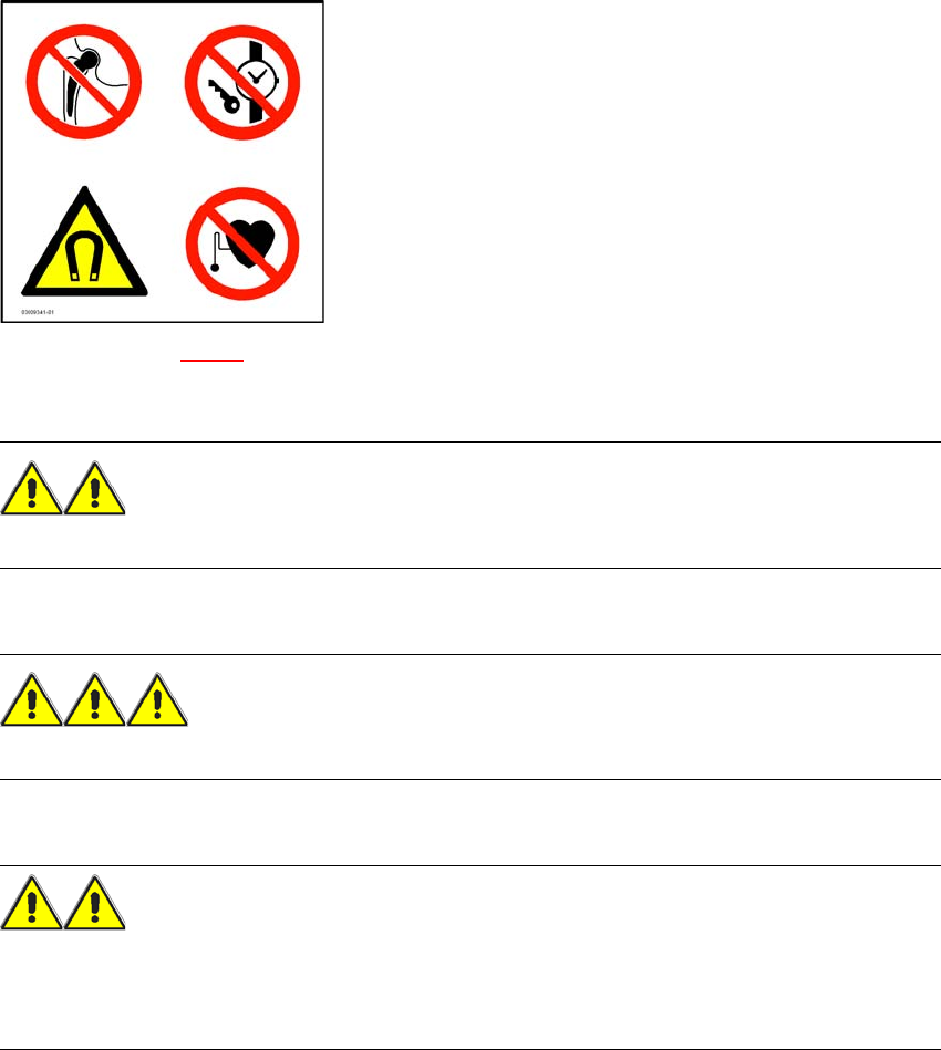 Danger of crushing for persons with passive metal implants (e.g. plates, screws).