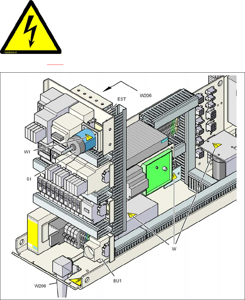 Fig. 2.2 - 7 Warning label W206, W and W1 on the power supply unit