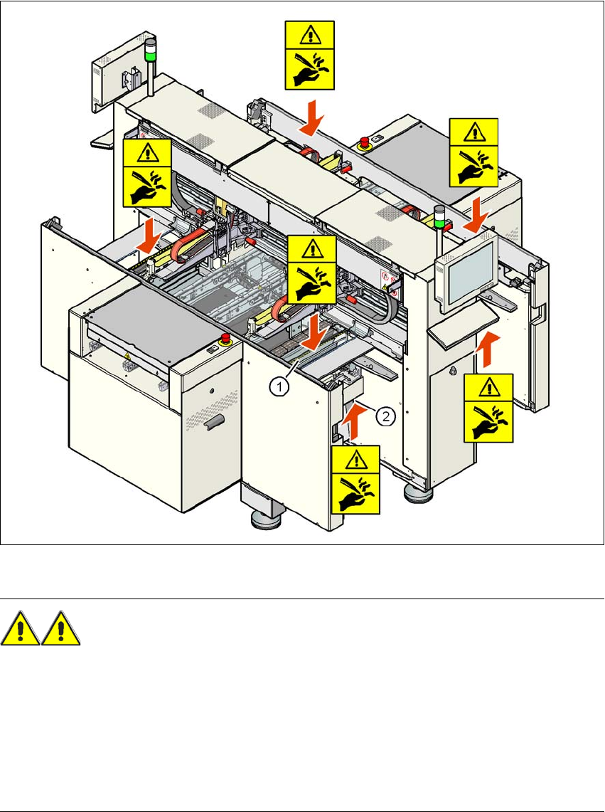 2 Operational safety User manual SIPLACE D4 2.6 Safety equipment From software version SR.605.xx 07/2008 EN Edition 58 2.6 Safety equipment 2.6.1 Protective covers 2 Fig. 2.6 - 1 Protective covers (1) Protective covers (…