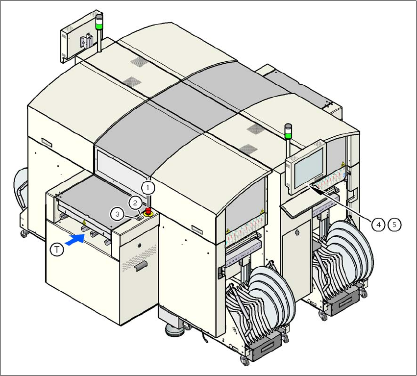 (1) EMERGENCY STOP button on the input side