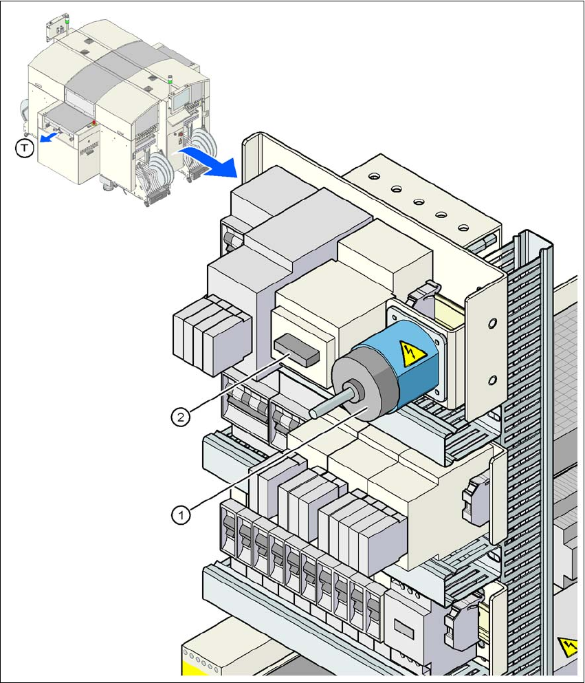 User manual SIPLACE D4 2 Operational safety From software version SR.605.xx 07/2008 EN Edition 2.10 Lock out and tag out procedure 81 2 Fig. 2.10 - 1 Position of the motor contactor 2 (1) Main power switch (2) Motor cont…