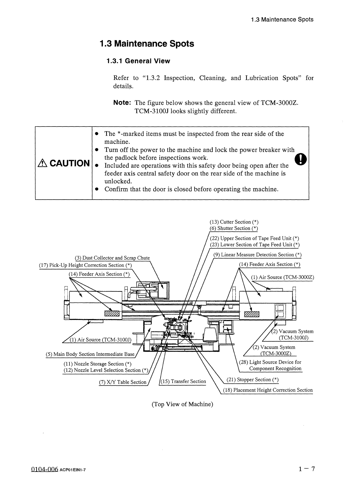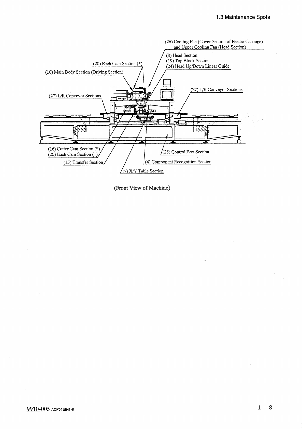 1.3 Maintenance Spots ( 26 ) Cooling Fan ( Cover Section of Feeder Carriage ) and Upper Cooling Fan ( Head Section ) ⑻ Head Section ( 19 ) Top Block Section ( 24 ) Head Up / Down Linear Guide ( 20 ) Each Cam Section ( * …