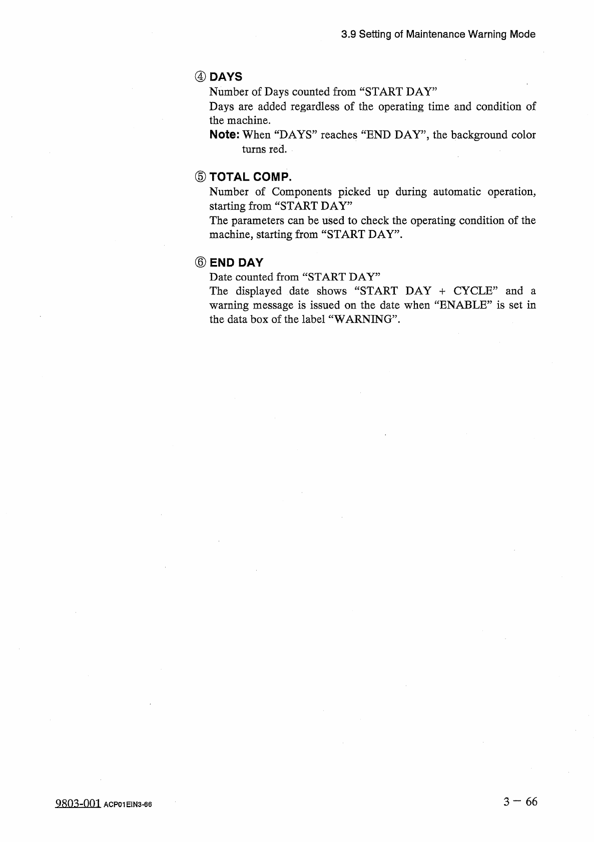 3.9 Setting of Maintenance Warning Mode 3.9 Setting of Maintenance Warning Mode ( 1 ) OIL - CHECKUP When the [ MAINTENANCE WARNING MODE ] key is pressed at the “ SPECIAL SEL • ” display , the following display appears on…