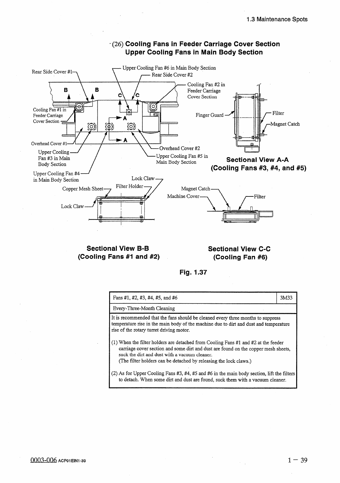 1.3 Maintenance Spots - ( 26 ) Cooling Fans in Feeder Carriage Cover Section Upper Cooling Fans in Main Body Section Upper Cooling Fan # 6 in Main Body Section Rear Side Cover # 2 Rear Side Cover # - l - Cooling Fan # 2 …