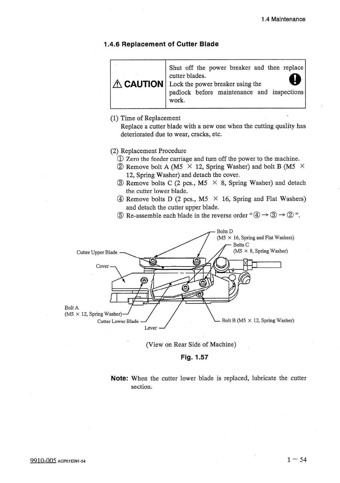 1.4 Maintenance 1.4 . 5 Detachment and Attachment of Component Drop Prevention Covers ( Tray ) The power breaker should be turned off before maintenance work . Lock the power breaker in “ OFF ” mode with the padlock befo…