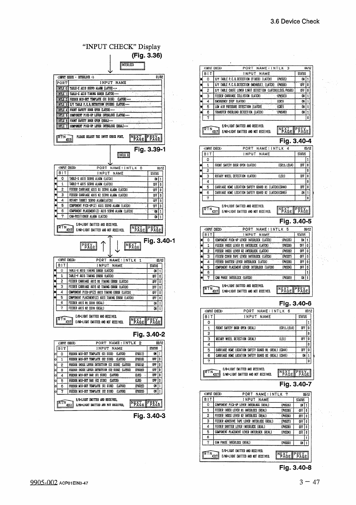 3.6 Device Check u INPUT CHECK - I / O DIAGNOSTIC - ” Display ( Fig . 3.37 - 1 ) \ i / PORT NAME : iNP 2 ~ 13 < IHPUI CHECK 〉 il / 14 < INPIJT CHECK - I / O DIAGNOSTIC - > 02 / 02 BIT INPUT NAME STATUS PORT . JN…