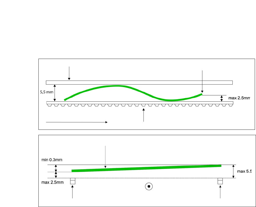 传送方向的 PCB 翘曲度 + PCB 的厚度 < 5.5 mm 。印制板边缘的弯曲