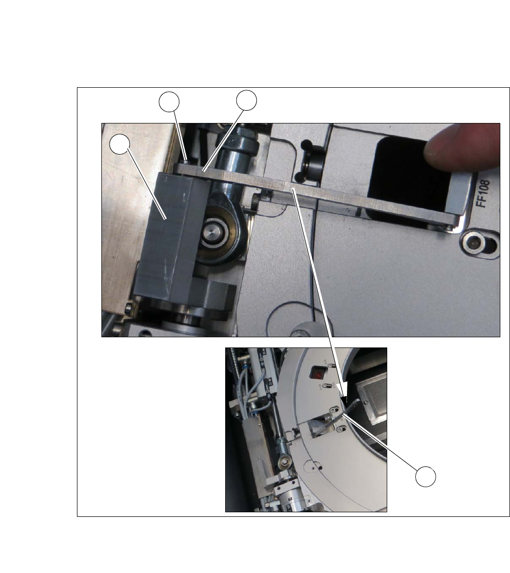 《用户手册》 SIPLACE CA- 系列 4 SIPLACE 晶圆系统 (SWS) 使用软件版本 SC.708.0 或更新 2014 年 1 2 月版 简体中文 4.5 SIPLACE SWS 晶圆延伸器 243 将夹具松开 4 图 4.5 - 8 晶圆支撑 - 将夹具松开 取下夹具 (1) 上轴 (2 ) 的弹性挡圈。 松开夹具的钩子,这样夹持杆 (3) 便可不受限制 (4)。 1 2 4 3