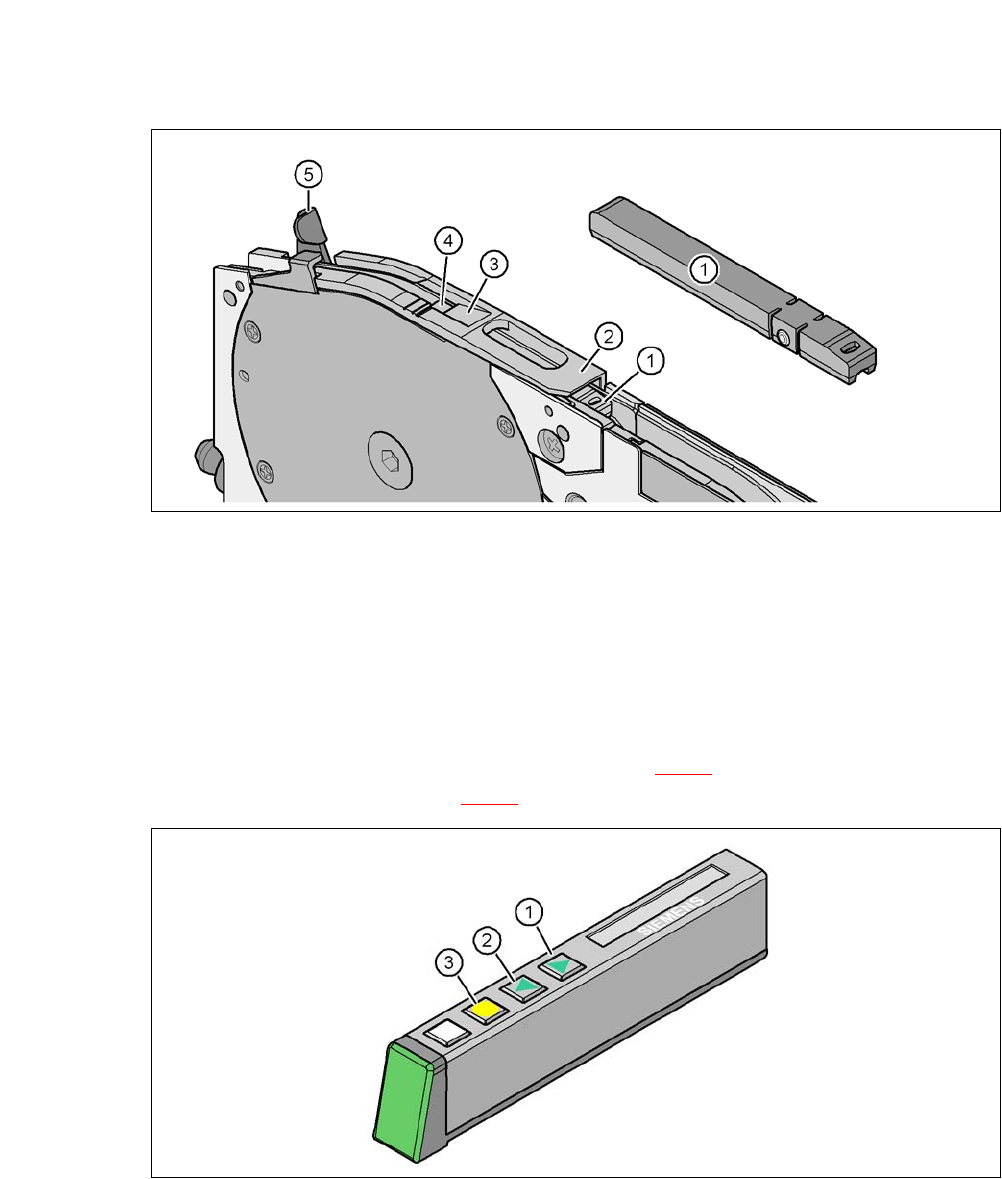 《用户手册》 SIPLACE CA- 系列 6 设备上的作业 使用软件版本 SC.708.0 或更新 2014 年 1 2 月版 简体中文 6.7 配置供料器模块 369 6 图 6.7 - 5 料带供料器模块上的拾取窗口 (1) 料带支撑件,可 拆卸 (2) 拾取窗口 (3) 盖箔的移除边缘 (4) 元件拾取区域 (5) 抬升和锁定拾取 窗口的控制杆 在操作员面板上按下 FORWARD (向前)按钮 (图 6.7 - 6 中的物件…