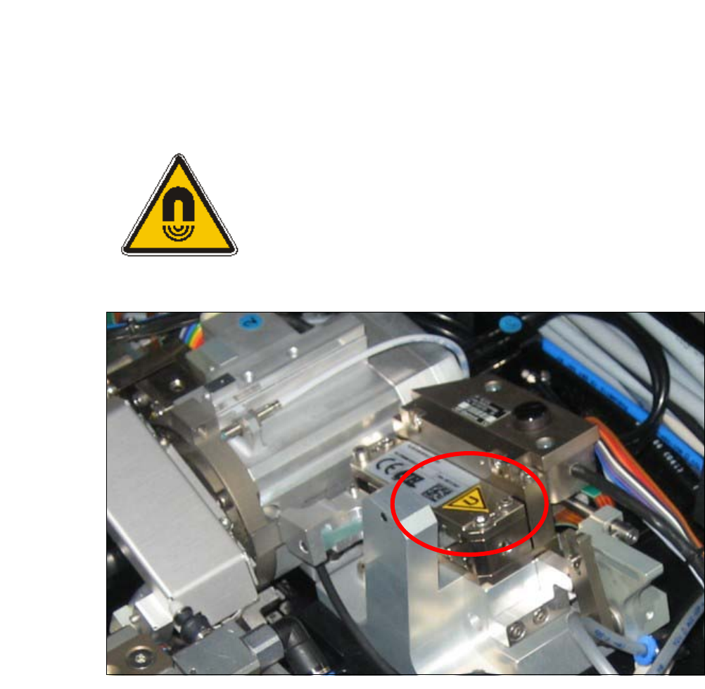 图 2.3 - 9 晶粒贴附单元上的警告标签