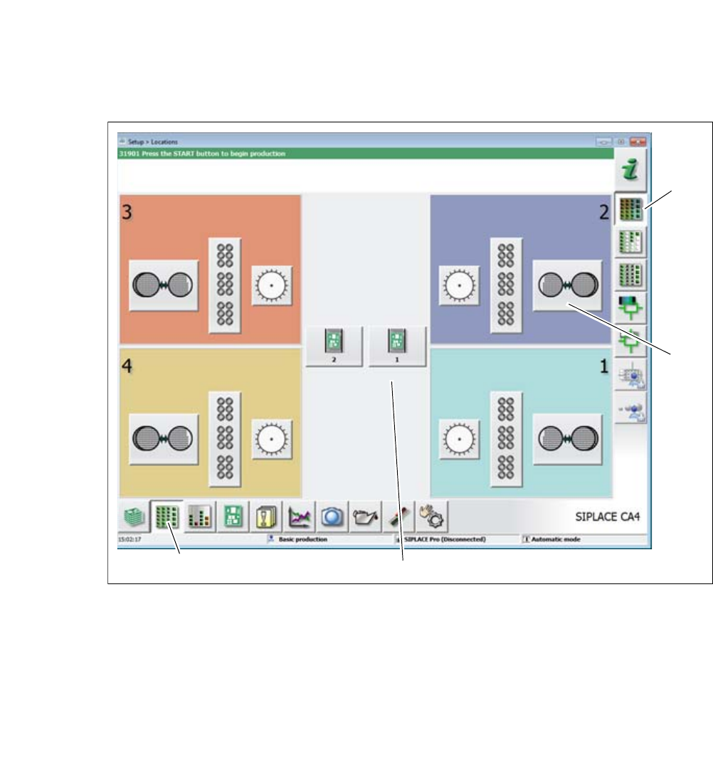 图 6.2 - 3 “ 供料器模块、元件和吸嘴 ” 视图中的用户界面 (示例为 SIPLACE CA4)
