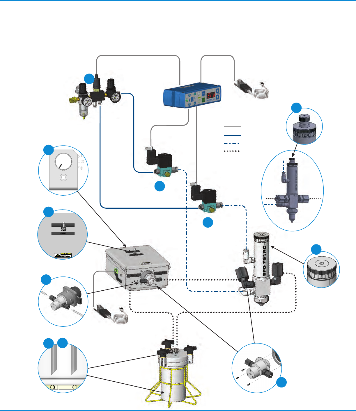 12. Set the nozzle air pressure on the nozzle to 0.7 bar (5 psi)