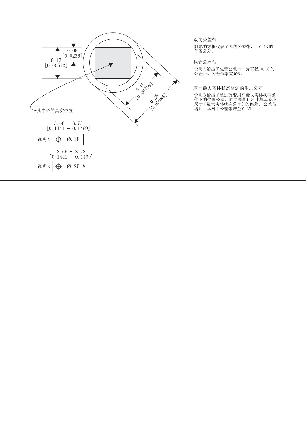 图5-4 位置公差对双向公差的优势、mm[in]