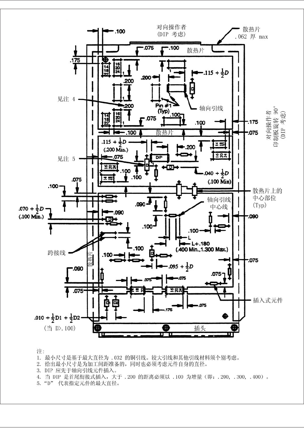 图7-1 通孔印制板组装件上⾃动元件间插装对元件间距的要求[in]