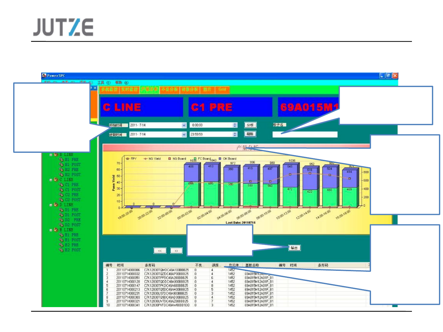 2.3 产量分析界面介绍,可以设定日期和时间进行查看。