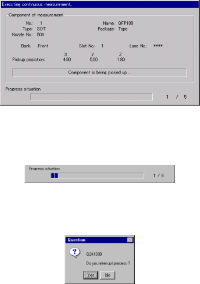 4 – 200 (2) “Executing continuous measurem ent” dialog box W hile the system is executing continuous measurem ent operat ion, the f ollowing dialog box appears on the screen. The descript ion of a component being measure…