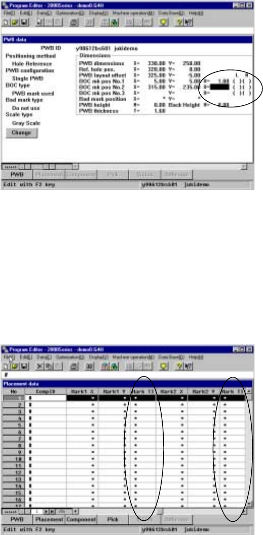 1 (2 or 3, as desired)” on the PWB data screen.