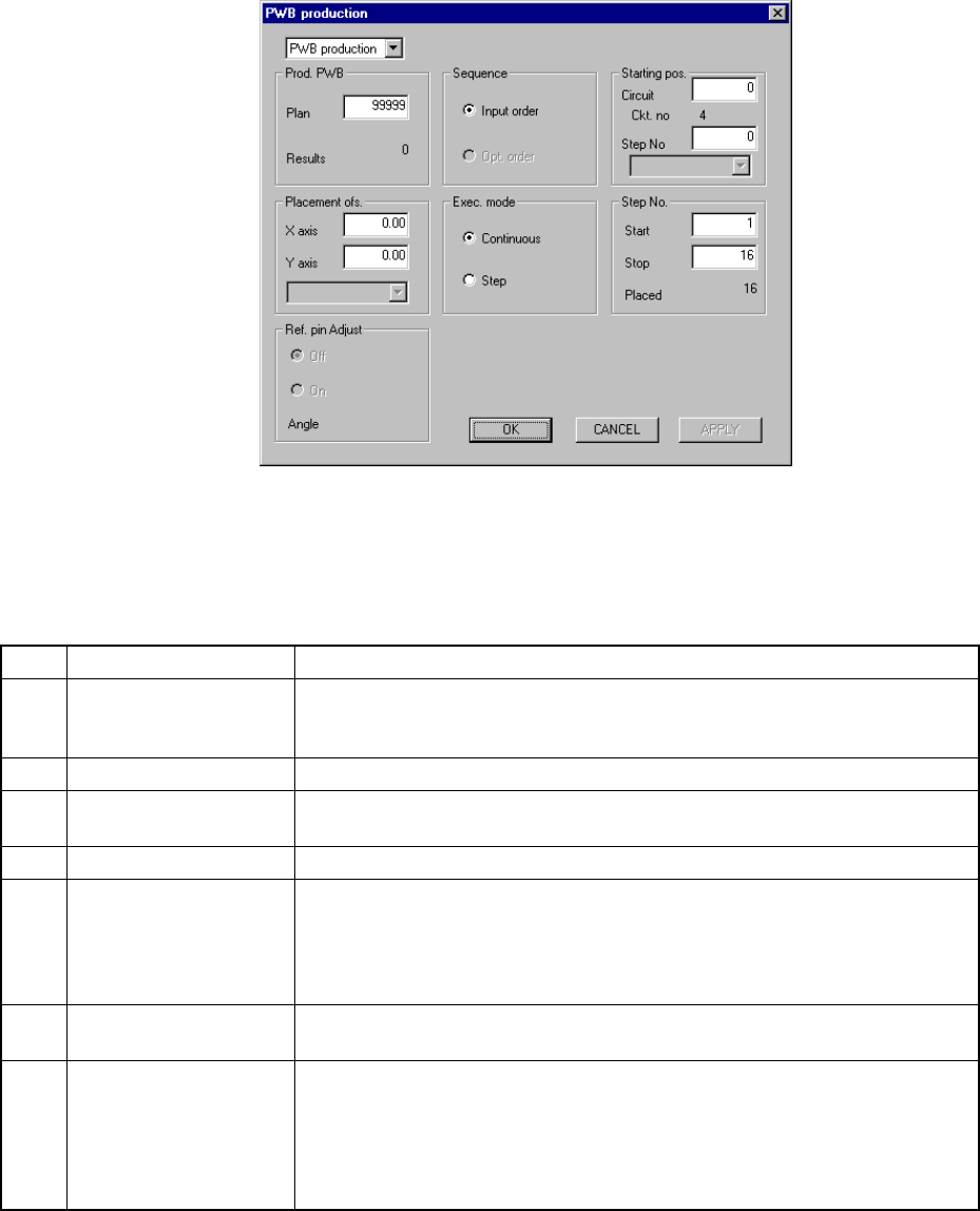 1 Setting items selection Switches the dialog box to be displayed among the PWB production conditions