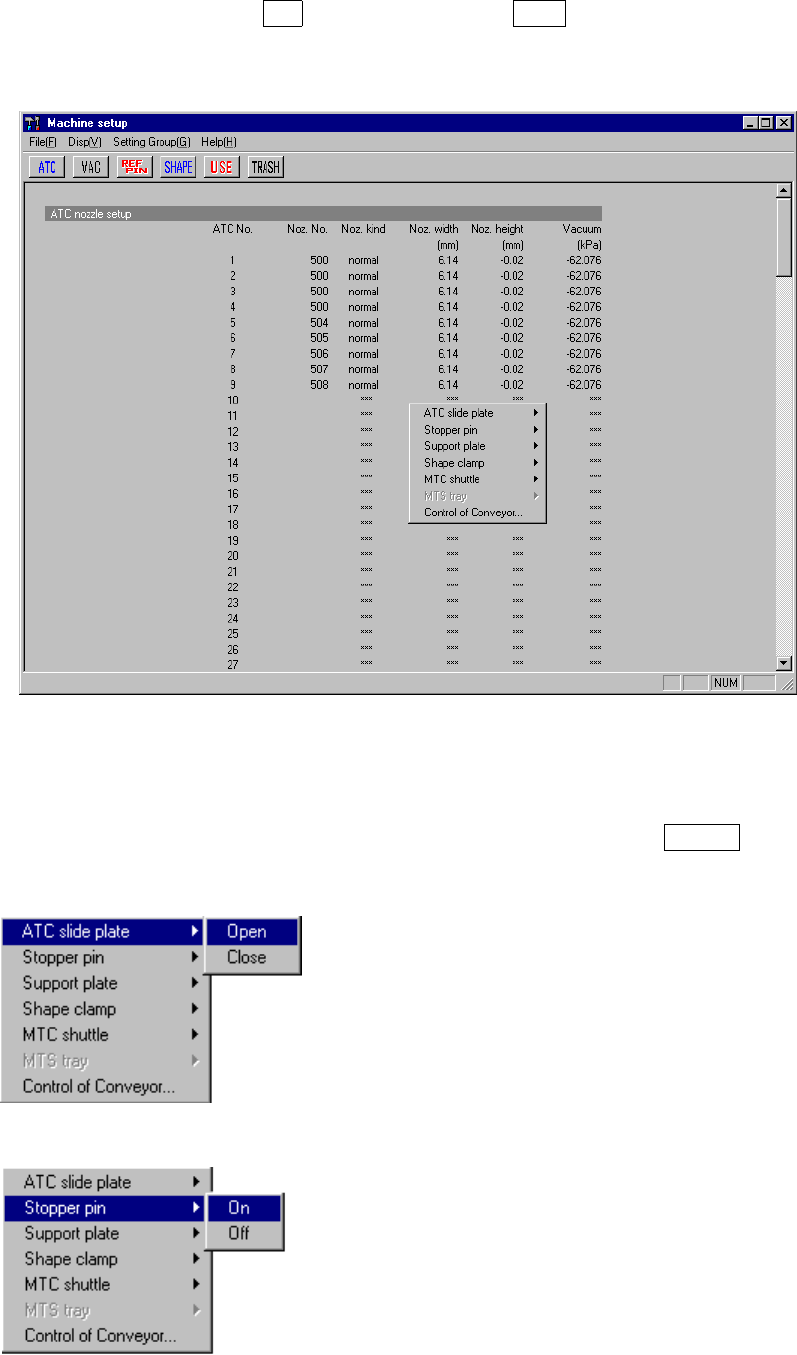 Setup menu, display the pop-up menu for mechanical devices. Press the right button