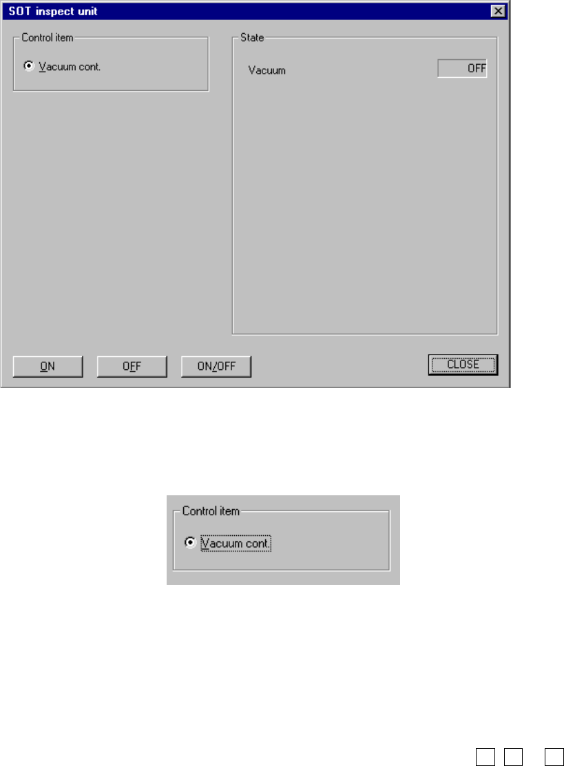 When you select the [Control], [Others] and [SOT inspect unit] commands in this