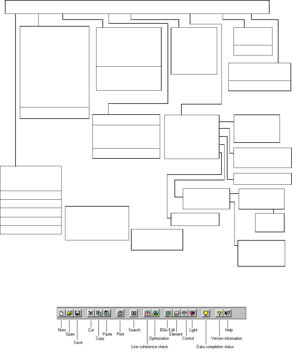 3 − 18 3.5.3 Production local menu T oolbar [T] Status Bar [S] V erify Current c heck V erify all check Laser chec k Open [O] Ctrl + O Over write Save [S] Ct rl + S Save as [A] Print [P] Ctrl + P Print prev [V] Print set…