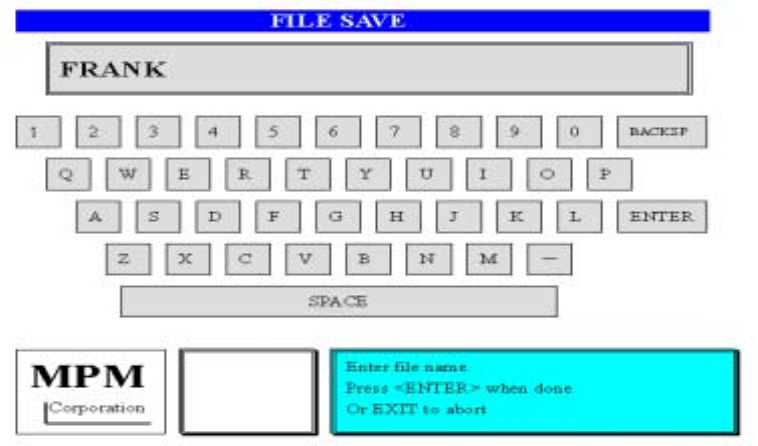 按 NEXT 之後,出現存入檔案鍵盤畫面