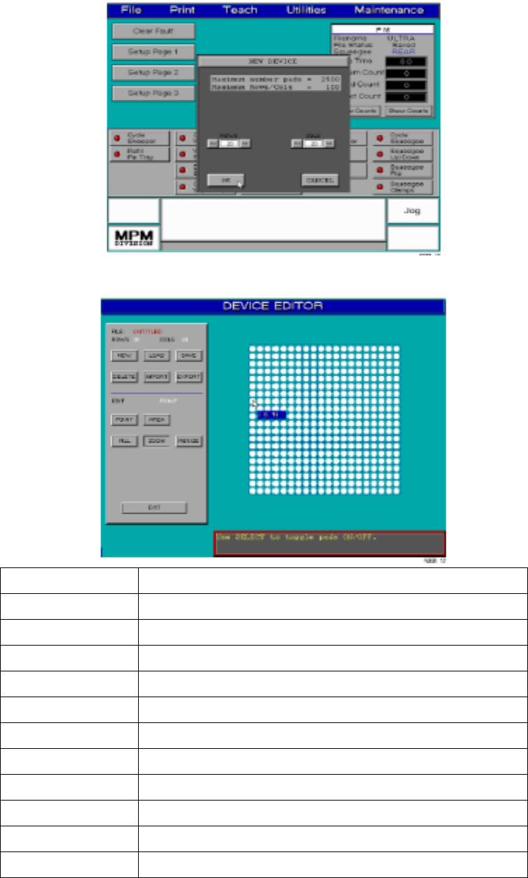PAD 點,或單邊最大為 100 個 PAD 點,但是不能超過最大 2500 個 PAD 點。 按 OK 後,顯下列視窗 NEW 編輯一個新 BGA LOAD 載入已經存檔 BGA 檔案 SAVE 儲存已經編輯完成一個新 BGA 檔案 DELETE 刪除已經編輯完成 BGA 檔案 IMPORT 從磁片載入一個 BGA 檔案 EXPORT 將 BGA 檔案儲存到磁片 POINT 以個別方式選擇一個 PAD 點增加或刪除 AREA 以一個區…