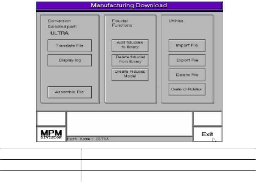 Conversion 用來下載製造轉換程式 Fiducial Functions 用來下載板子與鋼板基準點影像資料 Utilities 用來下載與載入到磁片內功能 51