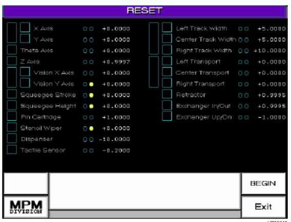 Reset 將各軸歸零。因每次關機時各軸位置不定,所以只要一開機時,