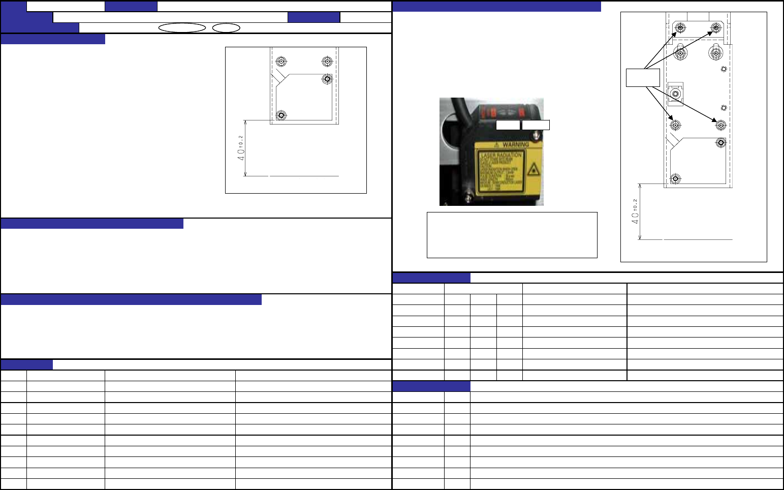 QA表 NO. 1 (1/2) NO. 1 (2/2) 机种 FX-1 零件名称 BMR 确认方法及调整方法(故障处理方法) 功能名称 BMR传感器高度调整 编制日期 2003/8/29 把BMR传感器部件移动到CAL块上,拧松带垫片内六角螺钉 质量保证类型 功能 · 安全性 / 可靠性 / 安全性 / 商品外观 (2处),移动BM透镜支架并调整BMR传感器下面与CAL块上面 质量特性(规格调整值) 的距离使之位于规格值后,用带垫片内六…