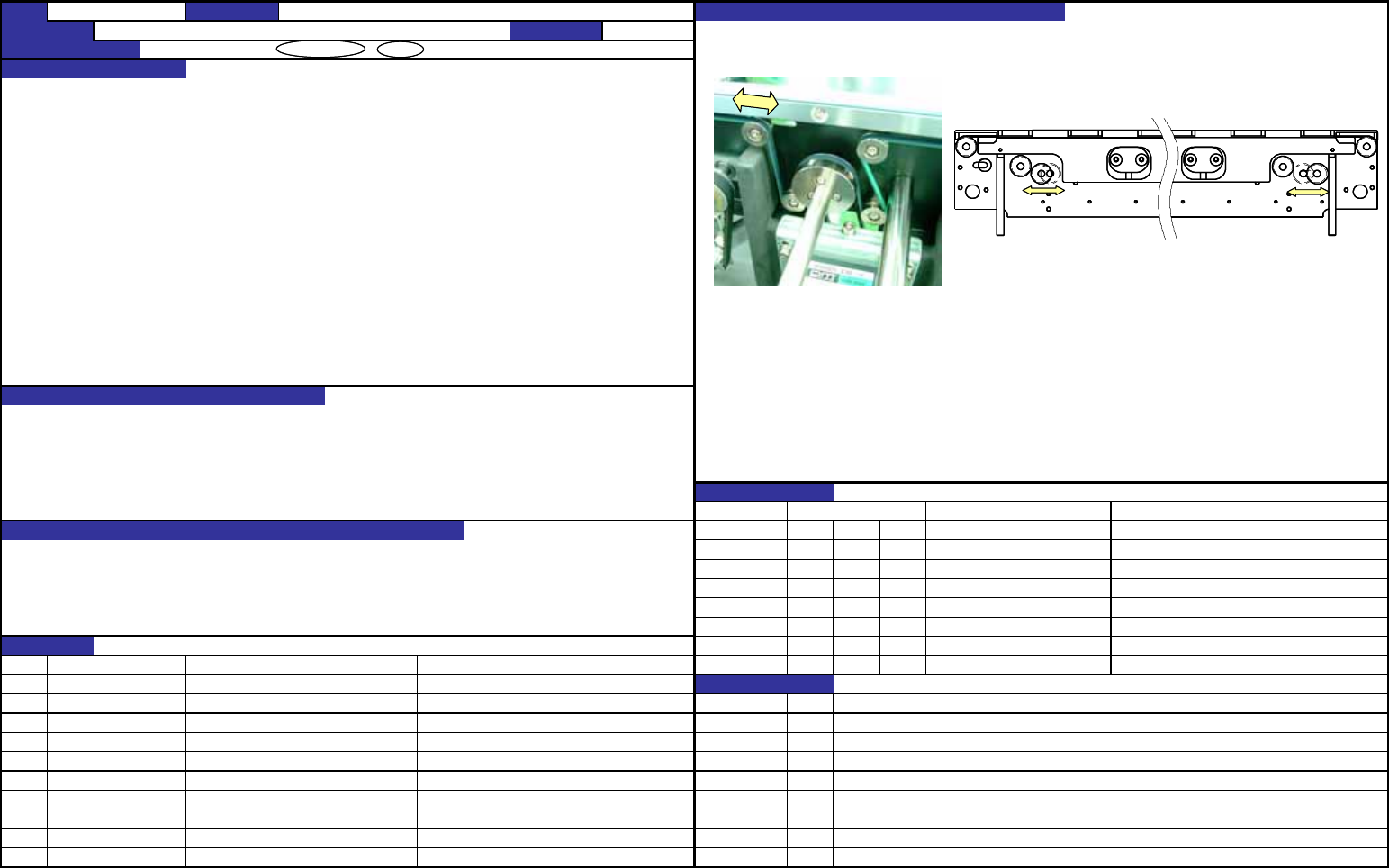 QA表 NO. 8 (1/2) NO. 8 (2/2) 机种 FX-1 零件名称 线路板的传送 确认方法及调整方法(故障处理方法) 功能名称 传送线路板位置的检测(与输入输出传感器相关) 编制日期 2003/9/1 1.调整输入传感器X轴方向的位置使其符合A尺寸的规定值。 质量保证类型 功能 · 安全性 / 可靠性 / 安全性 / 商品外观 质量特性(规格调整值) 1.输入传感器位置: 9.5mm±2mm 2.输出传感器位置: 20mm…