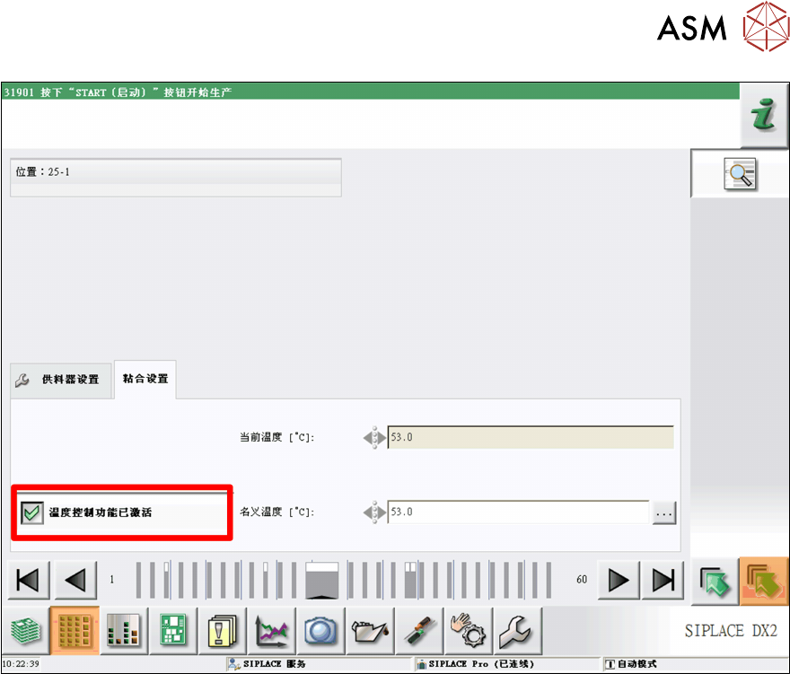 被送入贴片区域时启用。加热装置被启动,然后会保持激活 10 分钟。每当有一块印制板被送入贴片