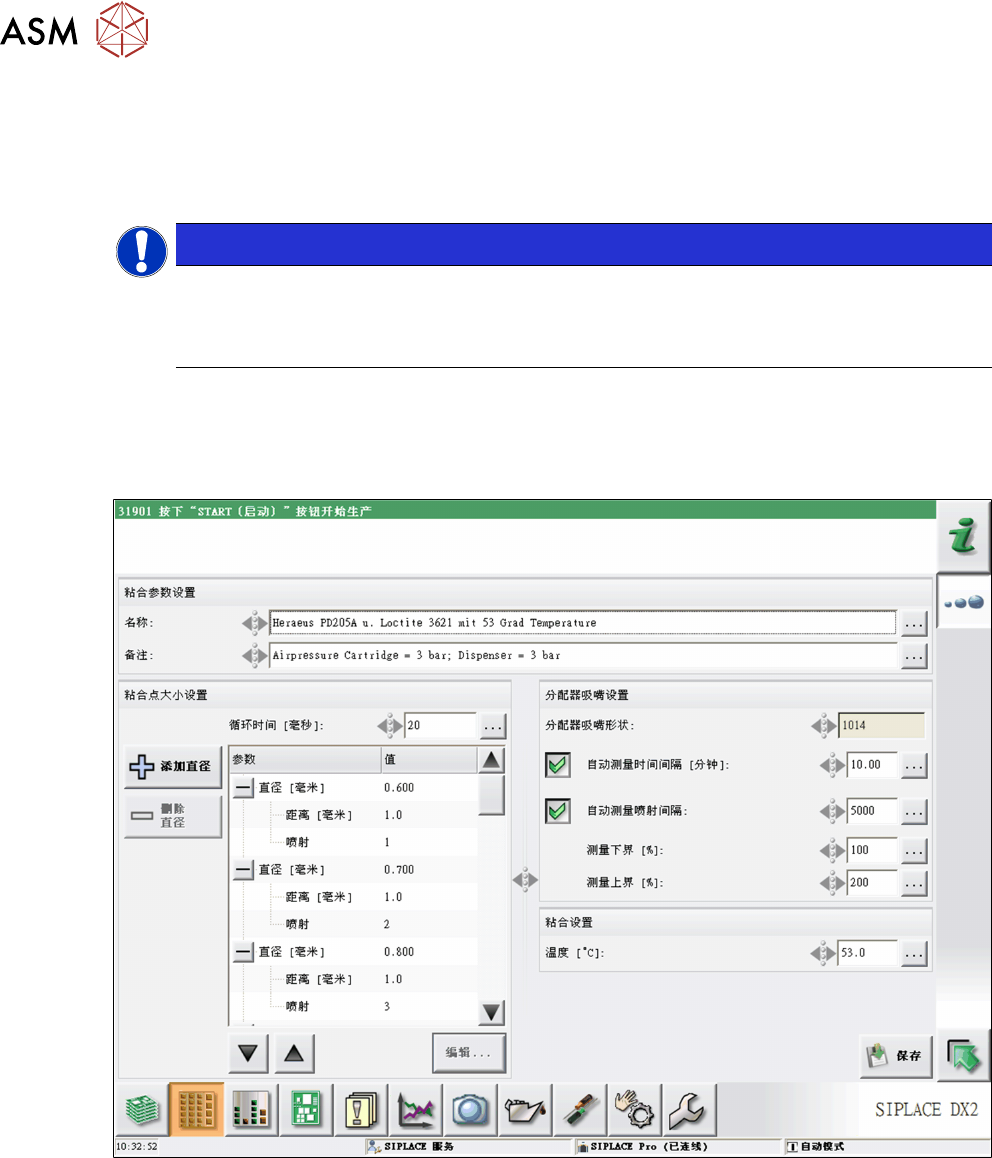 此参数集用于控制元件与分注喷嘴之间的距离,以及实现不同直径胶液点所需要的喷胶次数。您也