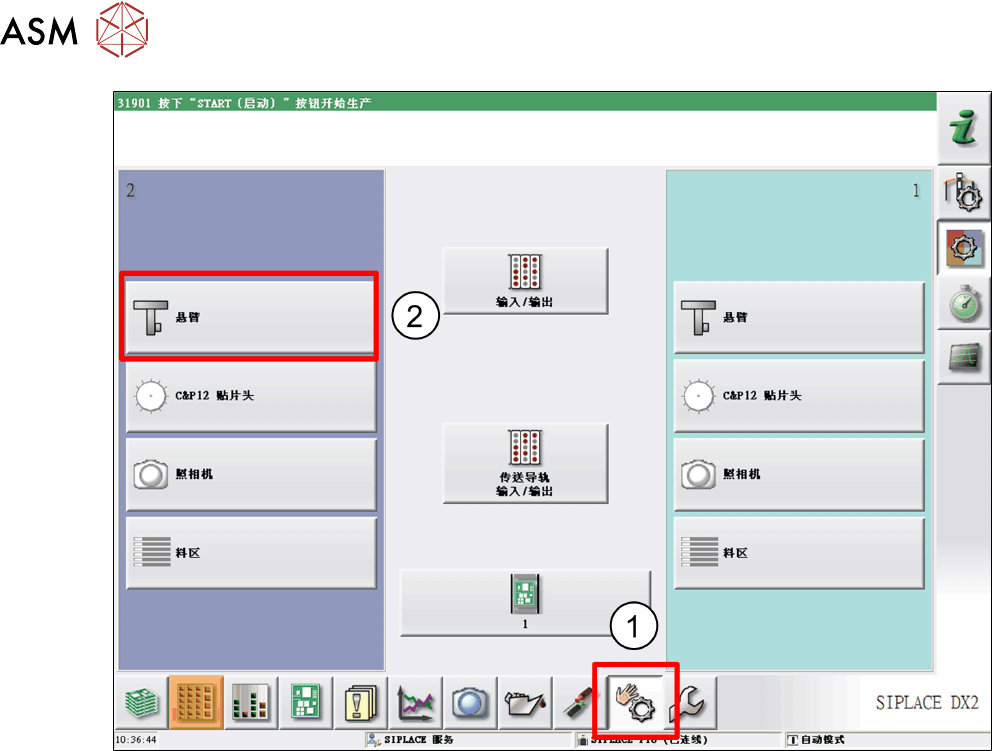 4 操作 4.2 706.1 及更高版本工作站软件的个别功能 用户手册 SIPLACE Glue Feeder 05/2020 63 ► 打开屏幕左边的轨道总览,然后标记 胶液供料器 条目。 (1) ► 之后点击 详情... 。 (2)