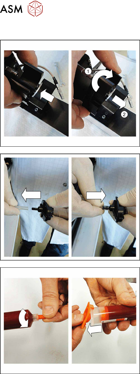 ► 将胶液盒适配器按顺时针方向拧到胶液盒上,直