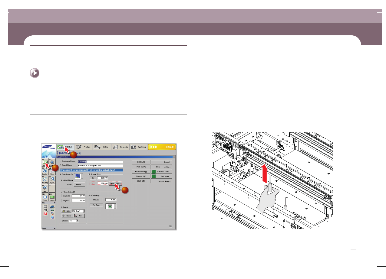 1. 选择’PCB编辑’菜单的基板’子菜单后, <7.板的大小>领域输入Y方向最大