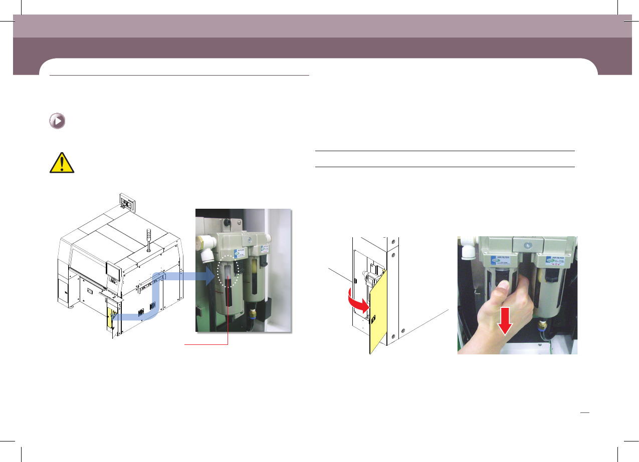 SM471 M aintenance Handbook 35 Cha pter 3 Fas t & Fl ex ibl e Chip Sho ot er Chapte r 3 每日检查 Filter Element Assembly Filter Element 每日检查 4. 顺时针方向转动 , 分离容器 5. Filter Element Assembly 分离 6. 在 Filter Element 团中更换 Filter…