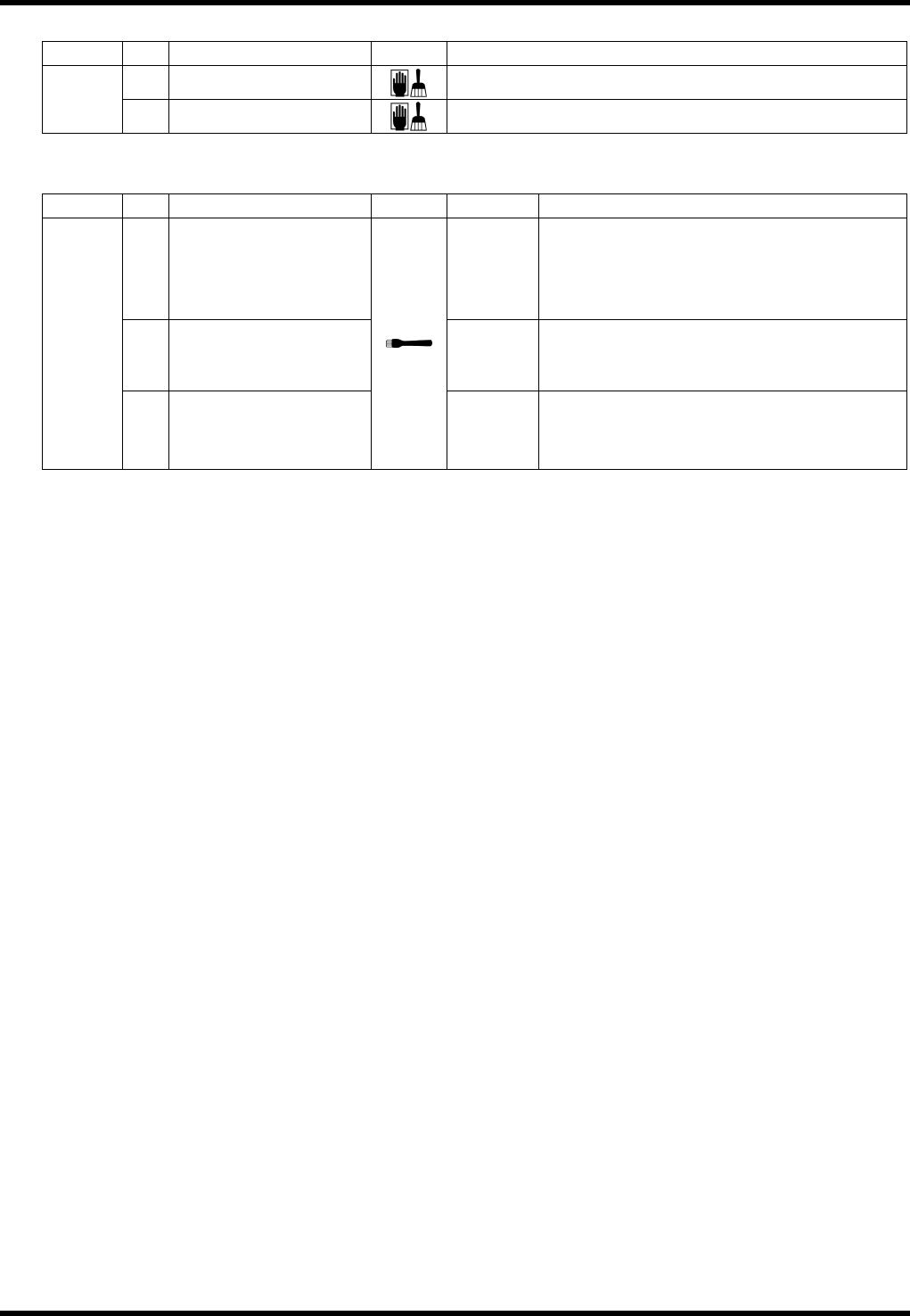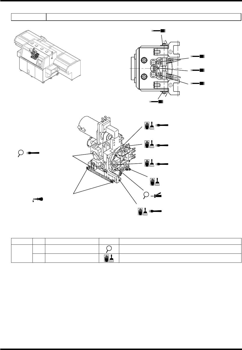 AV131 维修手册 7.8 元件供给部 D79MCC-Z 5-000-A0 7.8- 2 检查 周期 No. 项目 作业 详细内容 a. LM 导轨 清除异物或灰尘 。 每月 b. 滚珠丝杠轴 清除异物或灰尘 。 加油 周期 No. 项目 作业 加油量 详细内容 1. LM 导轨 (2 个 ) 每个 120 站 2.0 cm 3 60 站 1.0 cm 3 位置 : 轨道表面 2. 凸轮从动件 120 站 (12 个 ) 60…