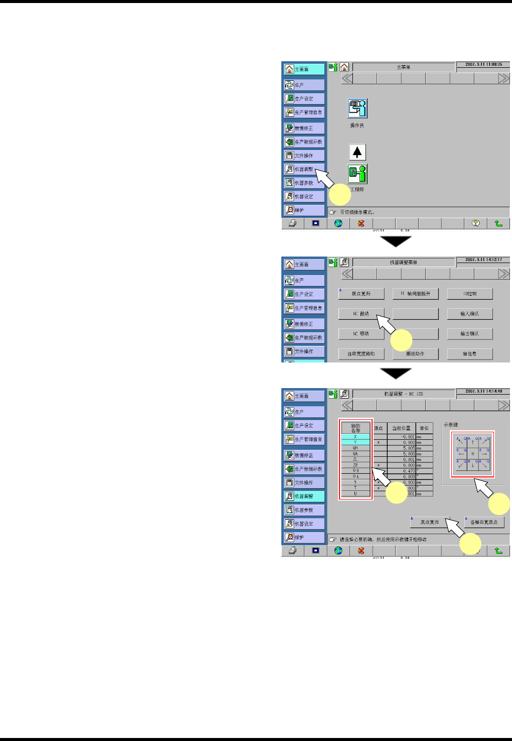 显示 “机器调整 - NC JOG” 画面。