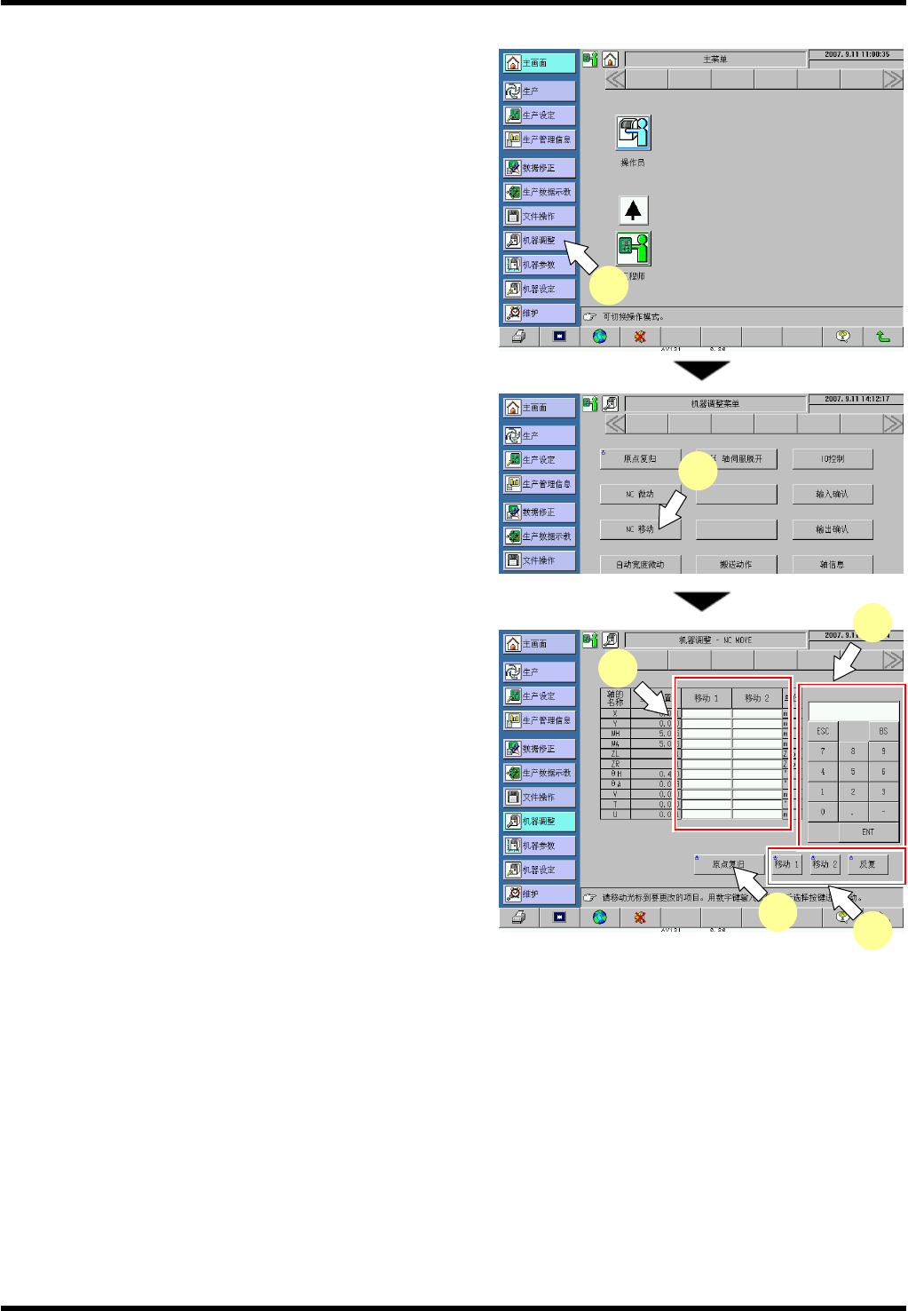 显示 “机器调整 - NC MOVE” 画面。
