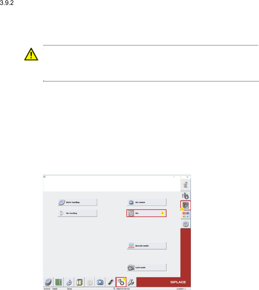 48 Pipe tten aufnahme Die - Atta ch - Modul auf Dichtigkei t prüfen Intervall : 3- monatlic h Arbeits mittel: Vakuum VORSICHT Für dies e Üb erprüfu ng ist mindes tens das Bediener Level Machine s ervice in der SWS GUI er…